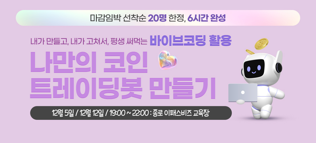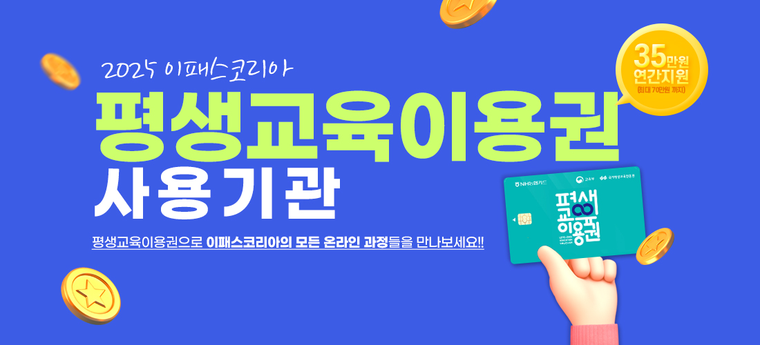 공지사항+ 더보기 AICE 20% 시험응시권 할인 안내2025-11-17🌈6시간 완성!! 선착순 20명!! 바이브코딩 활...2025-11-132025 이패스 AI능력시험 AICE Associa...2025-06-19[1인당 35만원 지급!!] 2025 평생교육이용권...2025-06-12 업데이트 안내+ 더보기 2025년 6월 19일(목요일) 업데이트 안내2025-06-192025년 6월 16일(월요일) 업데이트 안내2025-06-172025년 6월 12일(목요일) 업데이트 안내2025-06-172025년 6월 9일(월요일) 업데이트 안내2025-06-17 BEST 수강후기+ 더보기 제47회 데이터 분석 준전문가(ADSP) 합격!!!!2025-11-25AICE Associate(10.25.) 합격수기2025-11-11AICE ASSOCIATE 합격 후기 (10월 25...2025-11-11Aice Associate 합격수기 (10월 25일...2025-11-11 데이터분석 자격증 Track 프로 일잘러 인기과정 프로 일잘러 무료 영상+ 더보기 놓치기 아까운 이벤트+ 더보기