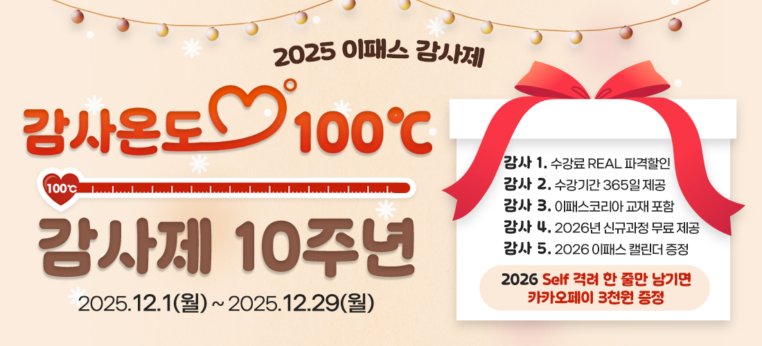 공지사항+ 더보기 2026년도 데이터자격검정 시행 일정2025-12-11AICE 20% 시험응시권 할인 안내2025-11-172025 이패스 AI능력시험 AICE Associa...2025-06-19[1인당 35만원 지급!!] 2025 평생교육이용권...2025-06-12 업데이트 안내+ 더보기 2025년 6월 19일(목요일) 업데이트 안내2025-06-192025년 6월 16일(월요일) 업데이트 안내2025-06-172025년 6월 12일(목요일) 업데이트 안내2025-06-172025년 6월 9일(월요일) 업데이트 안내2025-06-17 BEST 수강후기+ 더보기 제47회 데이터 분석 준전문가(ADSP) 합격!!!!2025-11-25AICE Associate(10.25.) 합격수기2025-11-11AICE ASSOCIATE 합격 후기 (10월 25...2025-11-11Aice Associate 합격수기 (10월 25일...2025-11-11 데이터분석 자격증 Track 프로 일잘러 인기과정 프로 일잘러 무료 영상+ 더보기 놓치기 아까운 이벤트+ 더보기